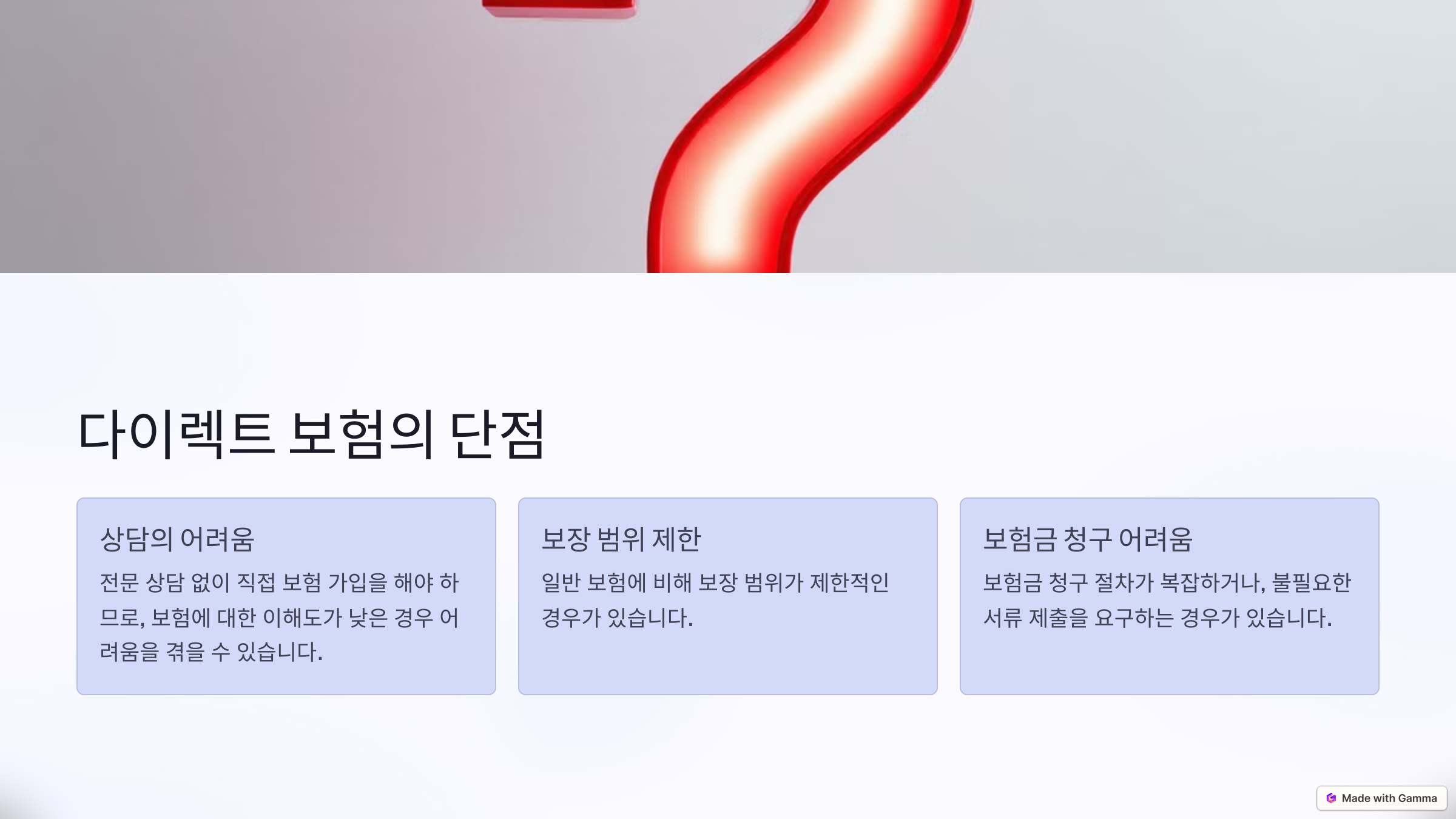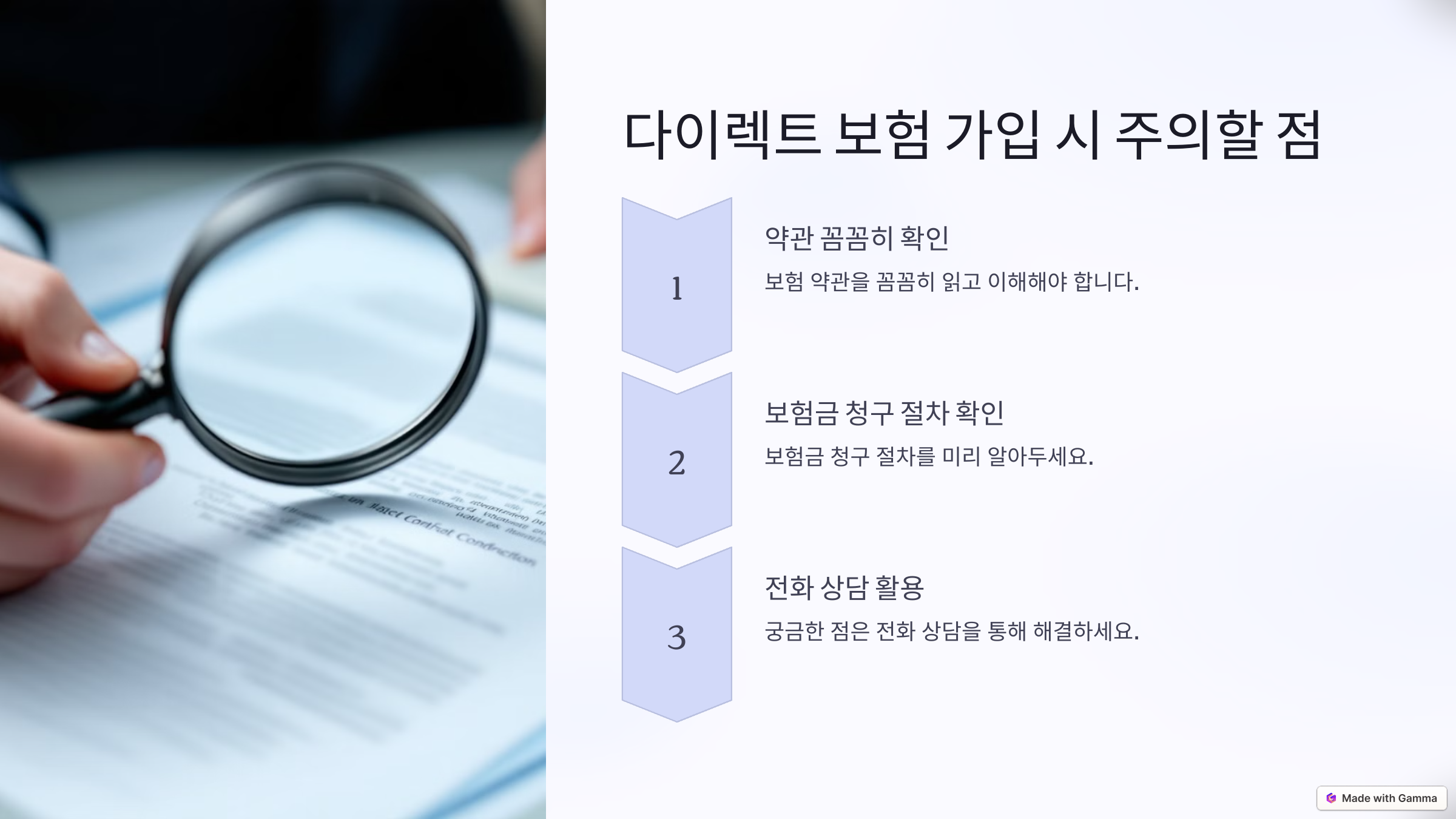 3) 직접 가입의 번거로움: 모든 조건을 소비자가 직접 비교하고 선택해야 하기 때문에 시간이 걸릴 수 있어요. 보험에 익숙하지 않다면 어려움을 느낄 수도 있답니다.