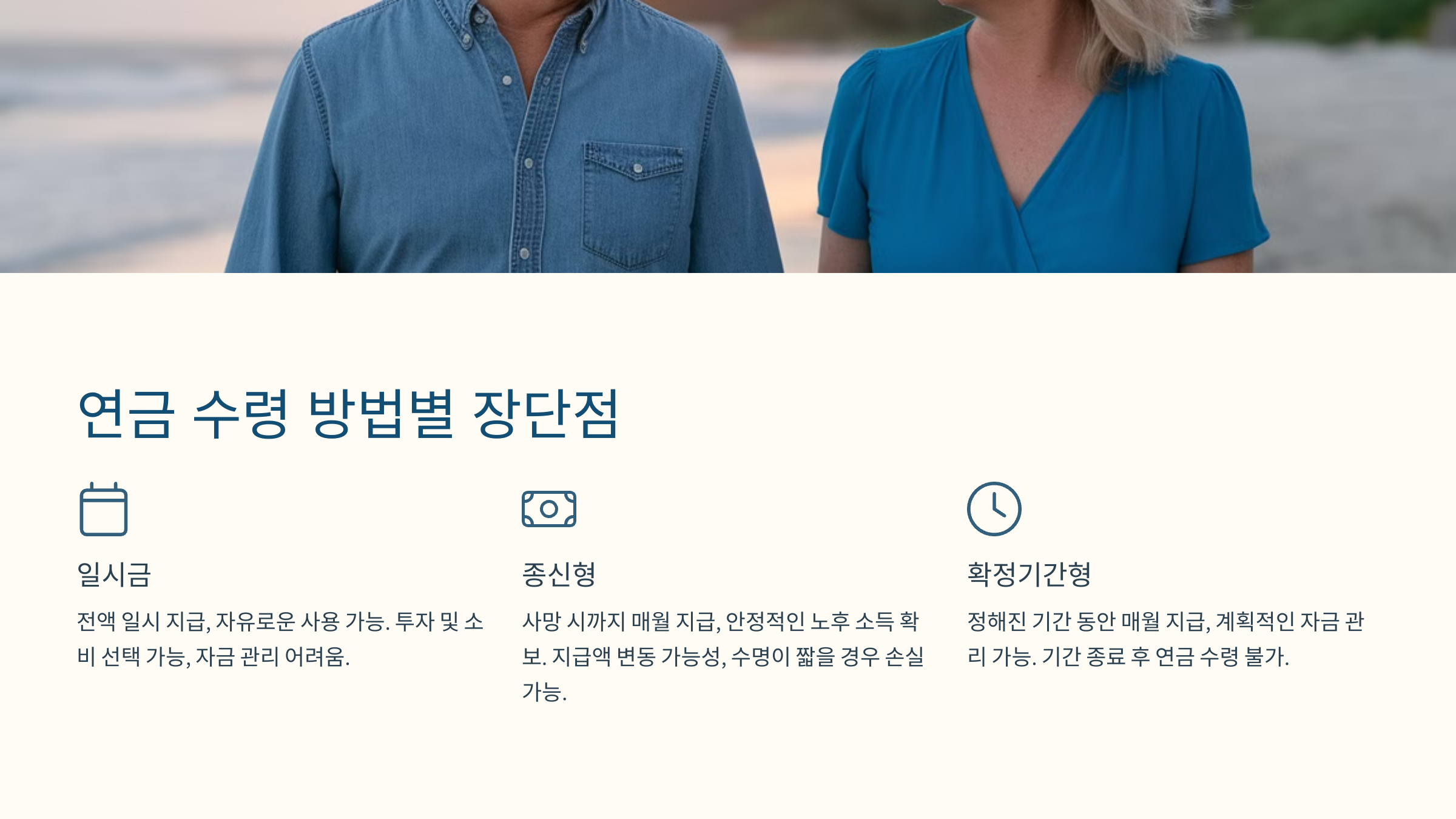 ③ 혼합형 수령: 일시금과 연금 수령을 적절히 조합하는 방식이에요. 단기적인 자금 활용과 장기적인 노후 대비를 동시에 할 수 있는 장점이 있어요.