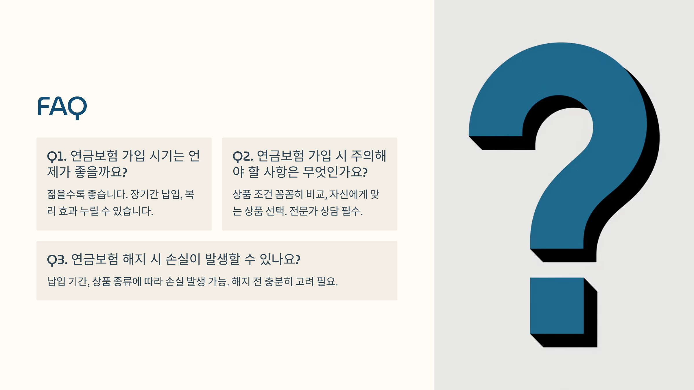또한, 연금보험 해지를 고려하고 있다면 반드시 알고 있어야 할 점들도 짚어볼게요. 무작정 해지하면 예상치 못한 손해를 볼 수 있기 때문에 신중한 판단이 필요하거든요.