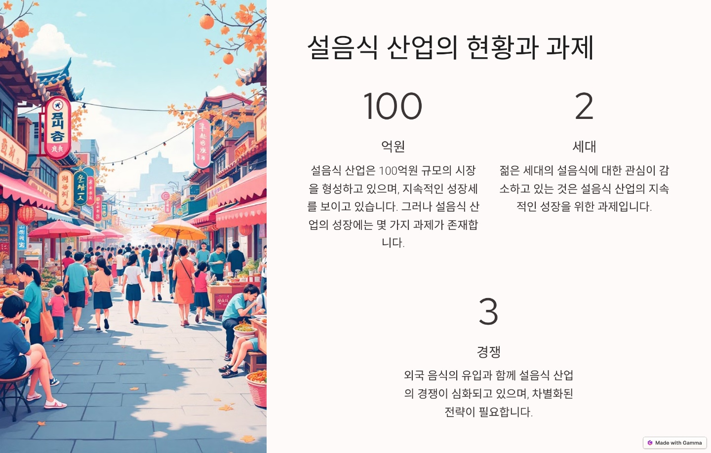 - 서울: 기본적인 명절 음식인 떡국, 만두, 전통 간식 등이 주로 등장.