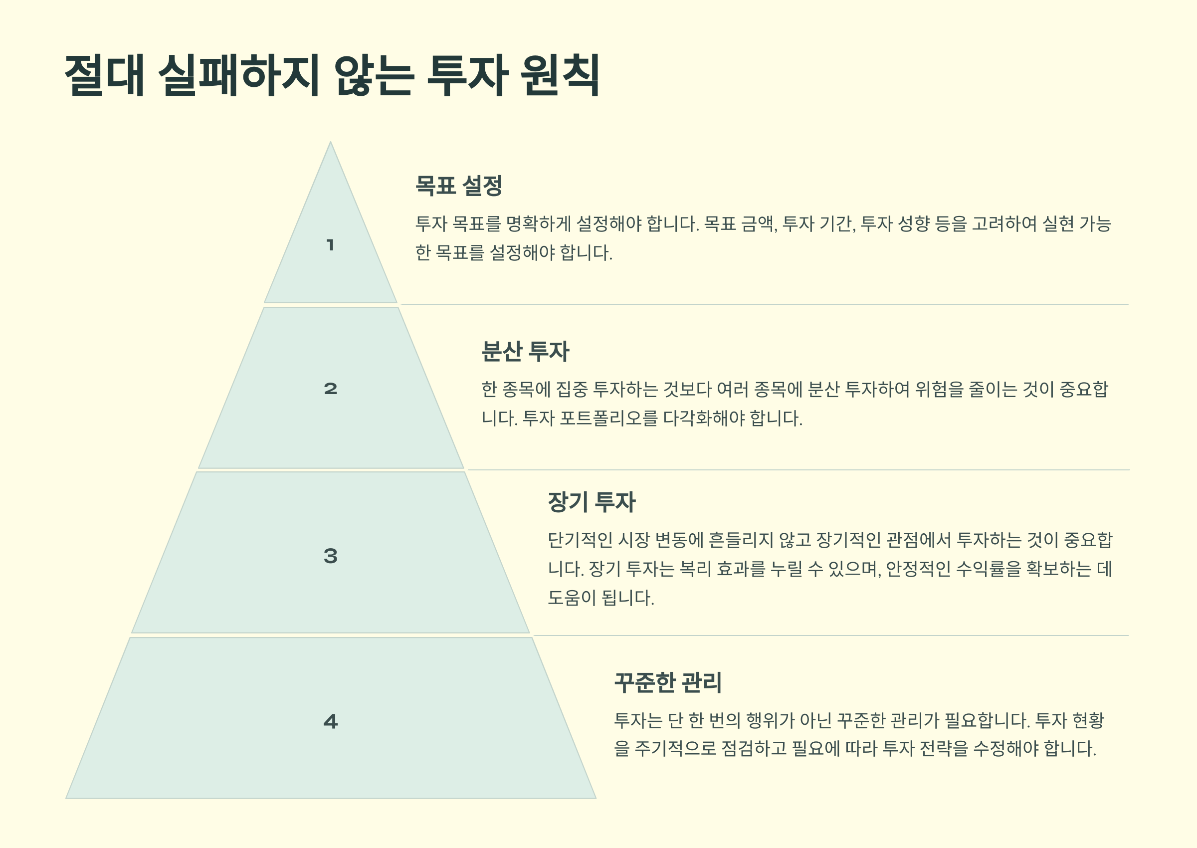 성공적인 투자를 위해서는 몇 가지 중요한 원칙을 반드시 지켜야 해요. 투자에서 실패하는 대부분의 이유는 기본적인 원칙을 무시하기 때문이에요.
