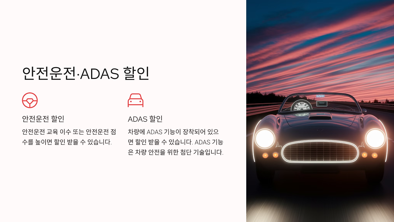 이 특약은 기술적으로 안전한 운행 환경을 조성하는 운전자에게 제공되는 혜택이에요. ADAS 기술을 탑재한 차량의 경우 보험료가 약 5~10% 절약되는 효과가 있어요.