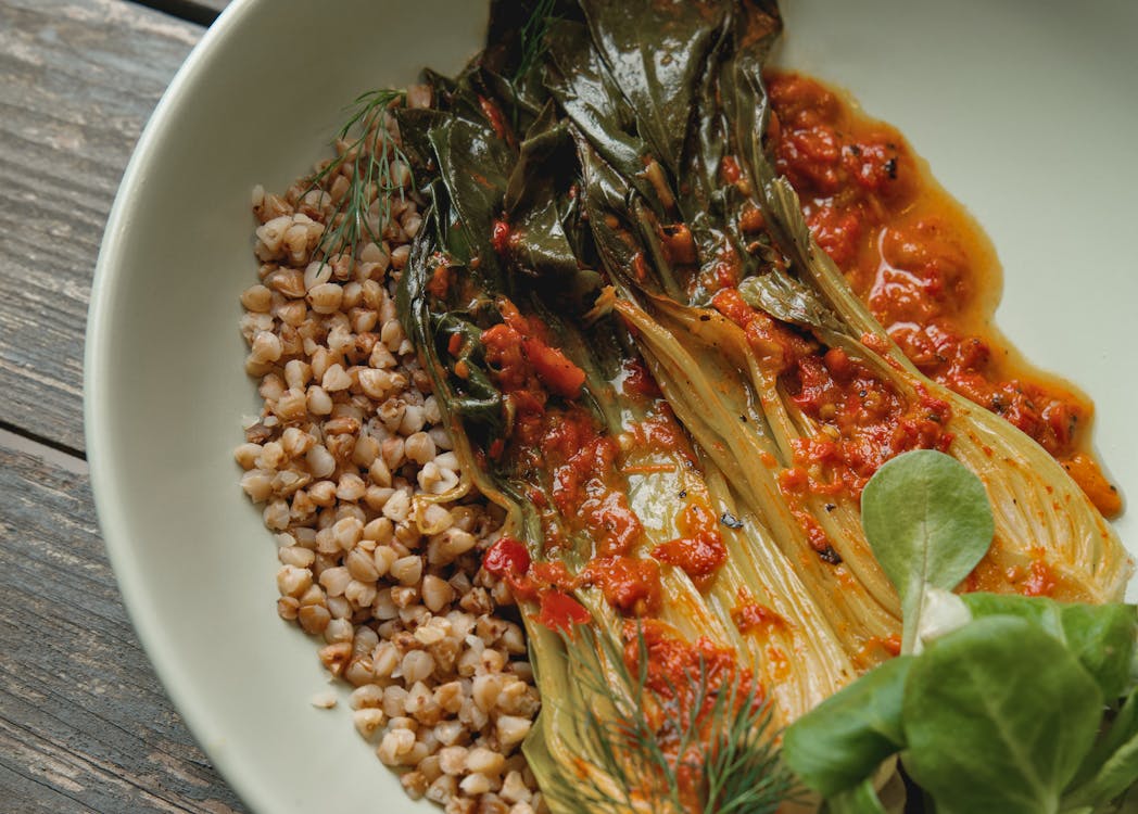 김치와 채소를 곁들여 저칼로리 식사를 구성하세요.