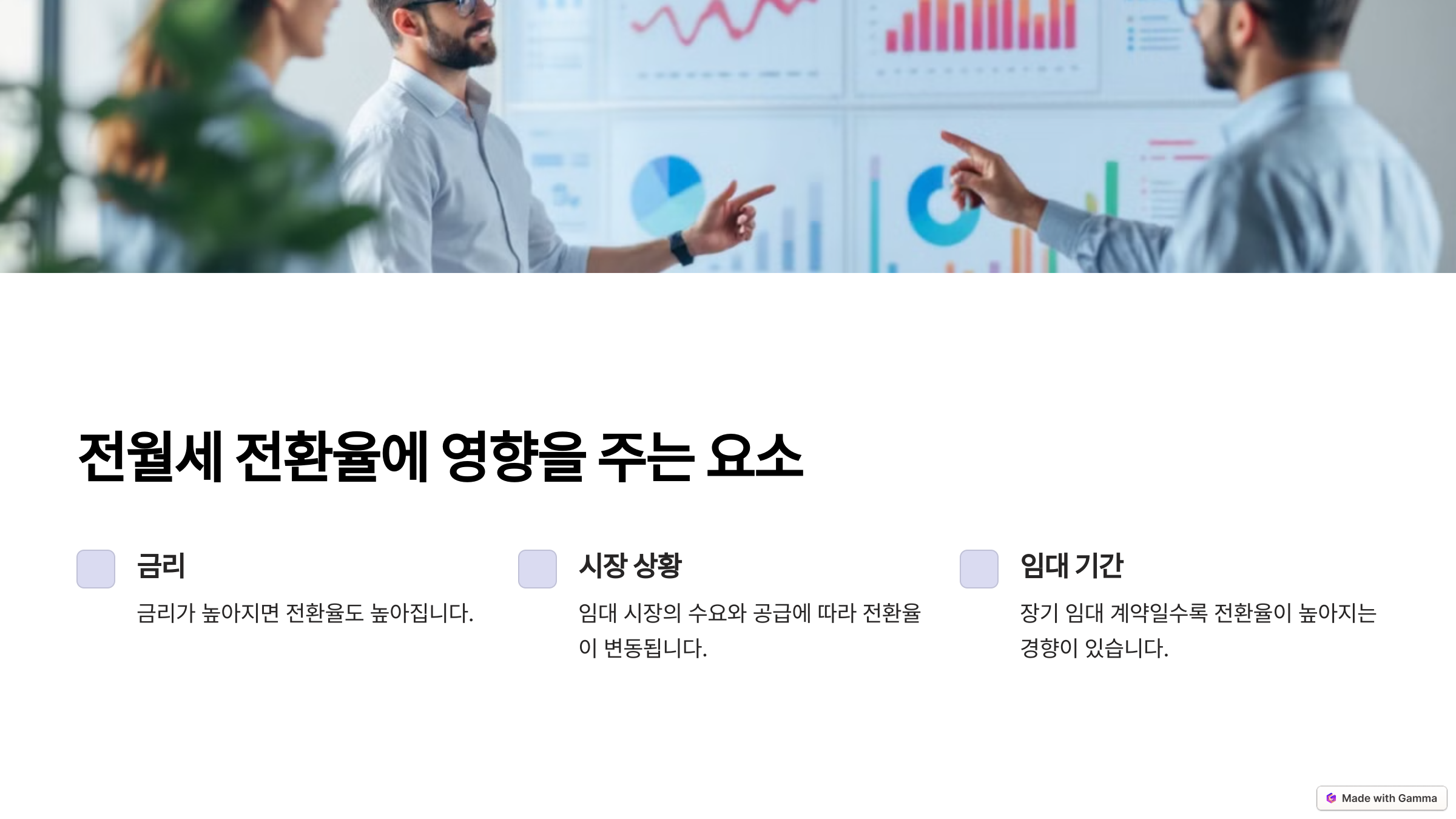 마지막으로, 임차인의 신용도와 협상력도 전환율에 영향을 줄 수 있어요. 집주인이 신뢰할 수 있는 세입자에게는 더 낮은 전환율을 제시할 가능성이 있답니다.