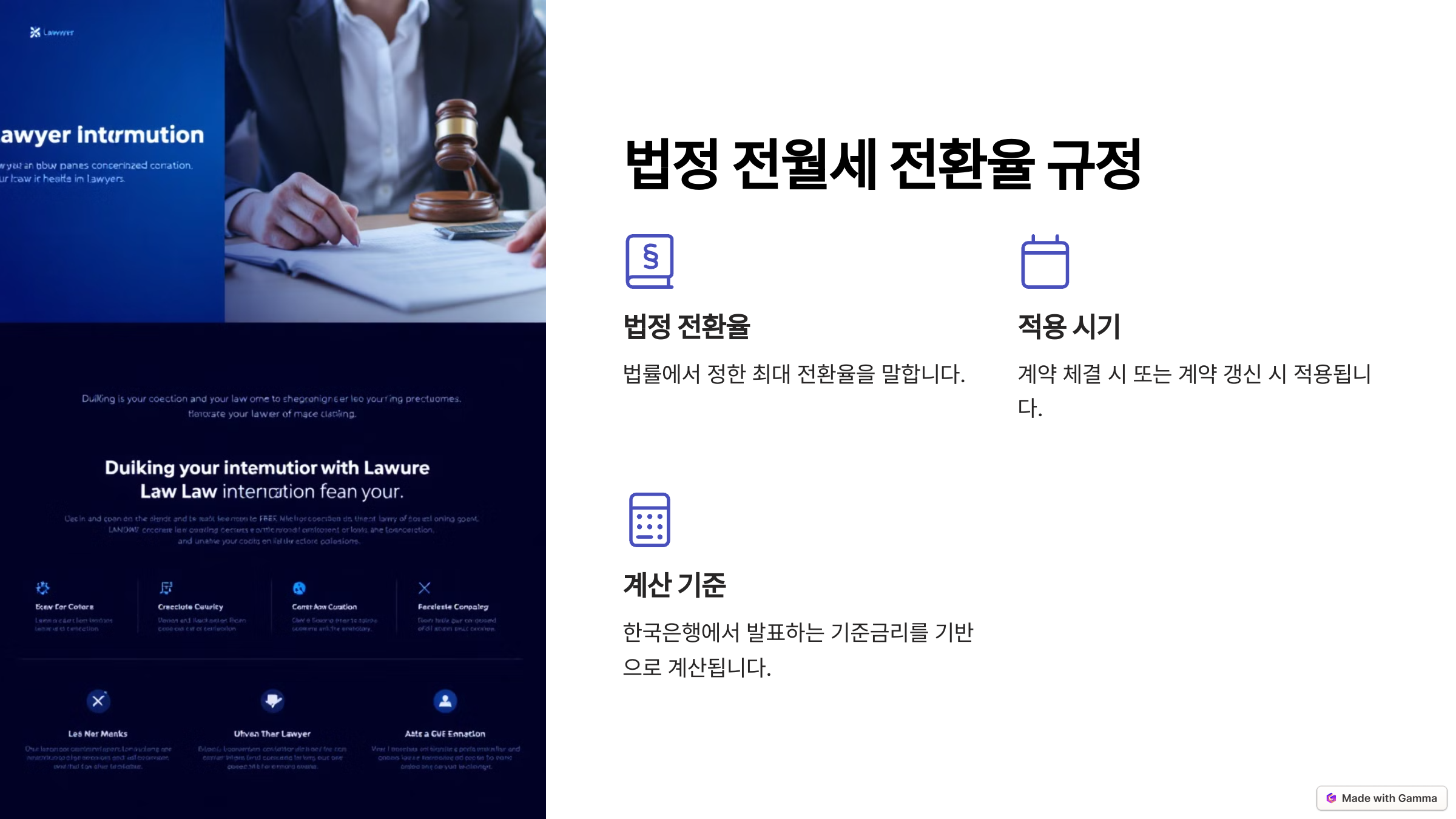 전월세 전환율은 무작정 집주인이 원하는 대로 설정할 수 있는 것이 아니에요. 한국에서는 임대차 보호법에 따라 법정 전환율이 정해져 있어요. 집주인은 이 법정 전환율을 초과하는 월세를 요구할 수 없답니다.