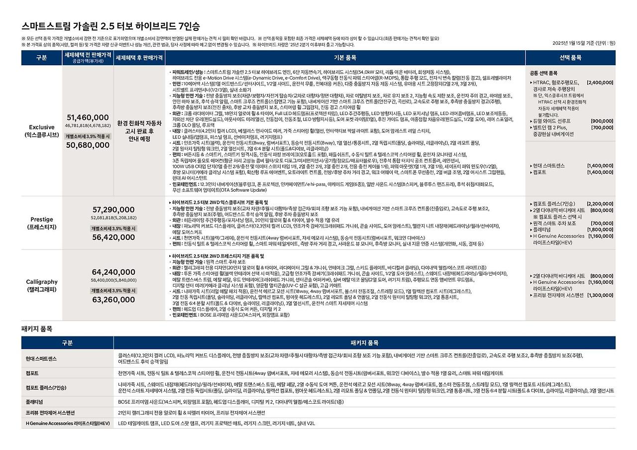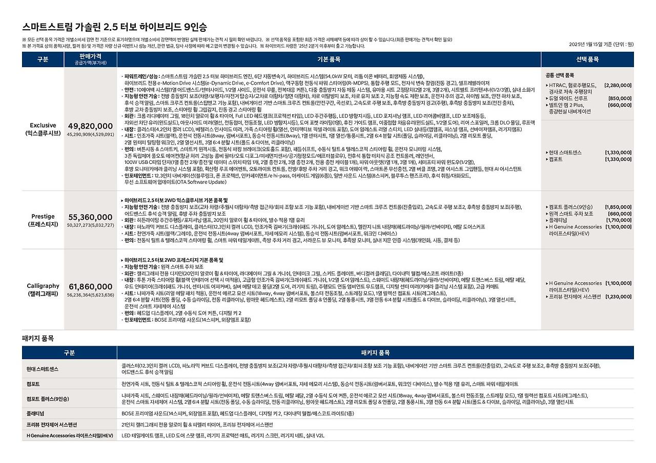 ▼ 팰리세이드 가솔린 하이브리드 가격표 ▼