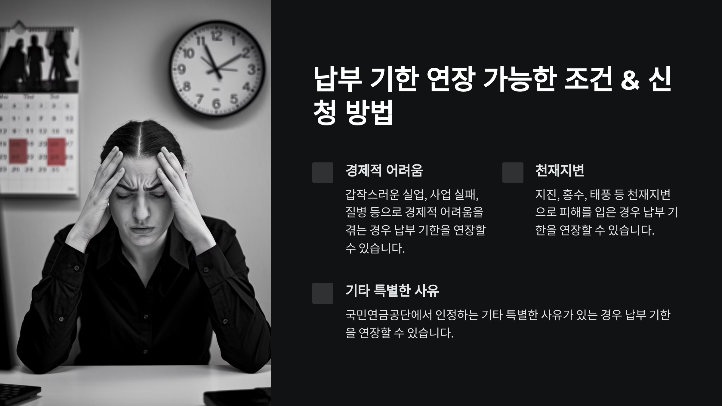 그럼, 어떤 경우에 국민연금 납부 기한을 연장할 수 있는지 알아볼까요?👇