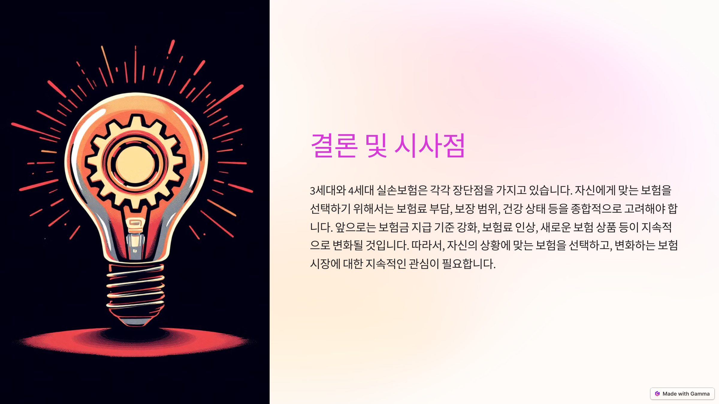 결론적으로, 4세대는 보다 합리적인 의료비 사용을 유도하는 데 초점을 맞추고 있으며, 3세대는 비교적 자유로운 이용을 제공하는 구조라고 볼 수 있어요.