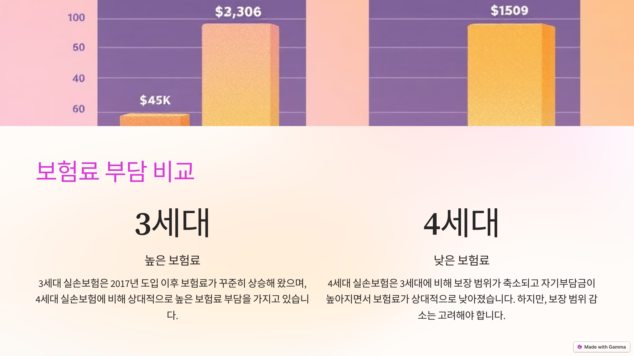 두 세대 간의 보험료 부담을 비교하면, 초기에는 4세대 실손보험의 보험료가 더 저렴하게 책정