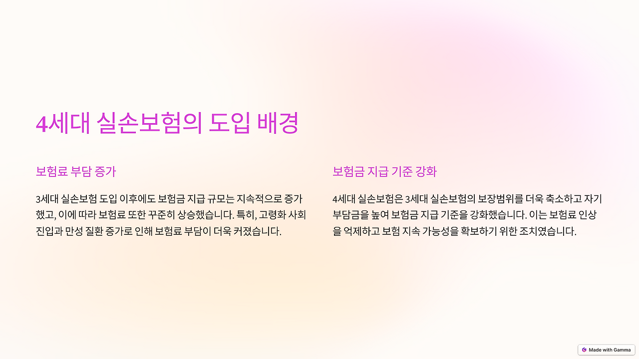 기존의 1세대와 2세대 실손보험의 단점을 개선한 형태로 등장했어요. 가장 큰 변화는 의료비의 자기 부담금 제도가 처음으로 도입되었다는 점이에요. 가입자가 치료를 받을 때 전체 의료비 중 일정 비율(보통 10~20%)을 스스로 부담해야 해요.
